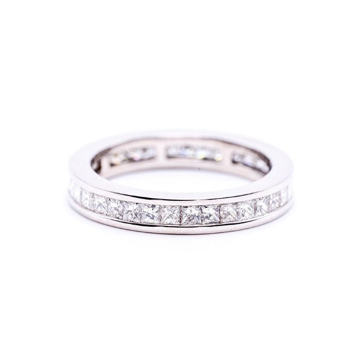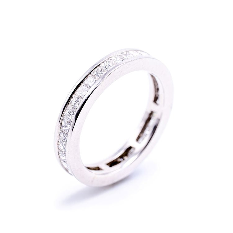 18ct White gold channel set princess cut 1.20ct diamond full eternity ring.