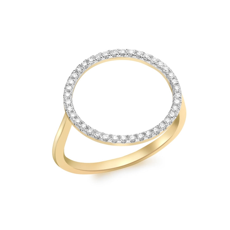 9ct Yellow gold open circle brilliant cut diamond set dress ring. Diamond approx Weight 0.20cts. Diamond Colour & Clarity I SI2.