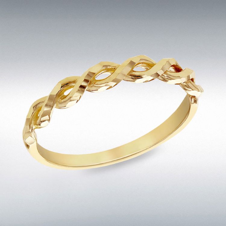 9ct Yellow gold diamond cut half twist ring.