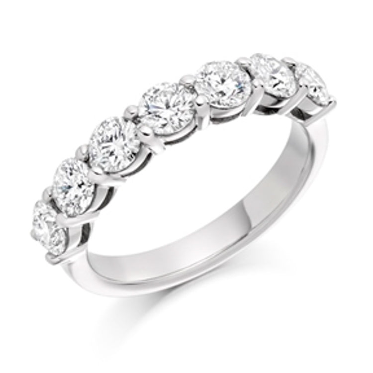 Claw set, 7x brilliant cut diamond 3.8mm wide Half Eternity Ring. 47% diamond coverage, total diamond weight 1.50ct, Colour G-H, Clarity SI Available in 9ct, 14ct & 18ct Yellow, White or Rose Gold, Platinum and Palladium Please contact us before placing your order to discuss the size required and delivery timeframe.