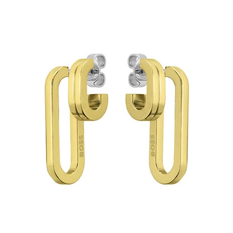 Ladies BOSS gold ionic-plated stainless steel drop earrings.