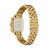 Olivia Burton ladies Grosvenor ionic rose gold plated stainless steel bracelet watch. Square dial set with crystal, quartz movement and water resistant up to 30m.