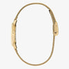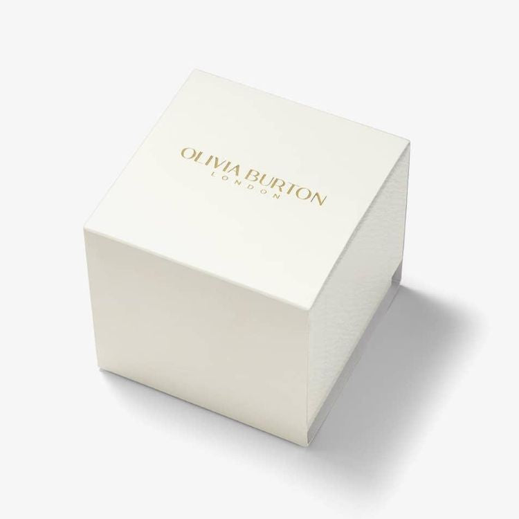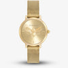 Olivia Burton Queen Bee stainles steel mesh bracelet watch. 28mm case diameter, light gold sunray dial with index, quartz movement and water resistant up to 30m.