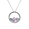 14ct White gold 0.79ct pink sapphire, 0.27ct enhanced blue diamond and 0.06ct white diamond circle necklace. Please note that Francis Wain Jewellers gives no warranty, return or guarantee for any pre-loved jewellery sold in store.