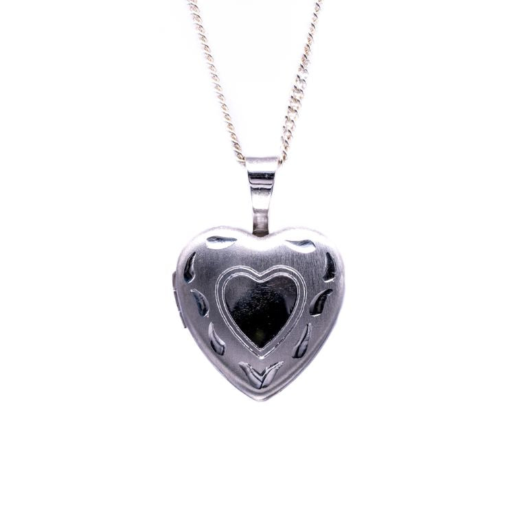 Sterling silver 12mm brushed and polished finish heart locket. Chain not included.