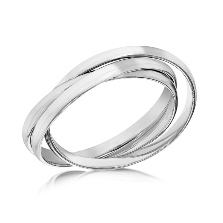 Sterling silver rhodium plated 2mm 3-band Russian ring.